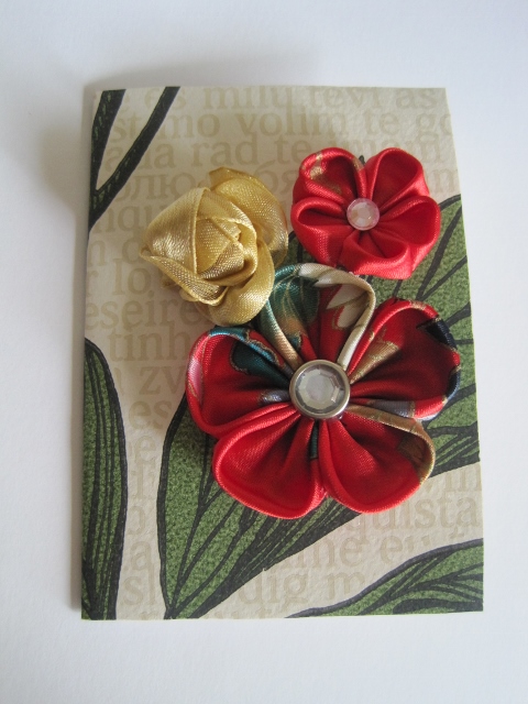 Käytin korttipohjaa jonka taitoin kahtia ja päällystin tapetilla ja kukkien liimaukseen käytin kaksipuoleista teippiä.