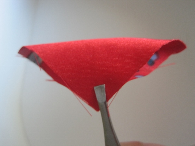 | taita kaksinkerroin ja leikkaa kulma pois sekä polta kankaanpäät kiinni.. |